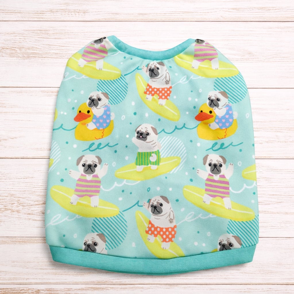 波乗りパグちゃんたちがとっても可愛いタンクトップだよ〜