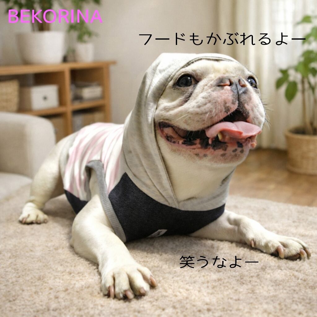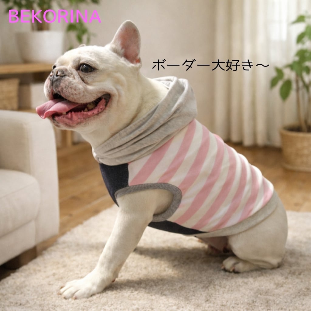 #フード付きタンク#ボーダータンク#ボーダー犬服#ボステリ#フレブル服#フレンチブルドッグ服#パグ服#ボストンテリア服#フレンチ服#犬服#可愛い犬服#ボステリ服#BUHI#Buhi服#ずれない犬服#脱げにくい犬服#べこりな#ベコリナ#プチプラ犬服#プチプラ可愛い#デニム#カラフル#かっこいい