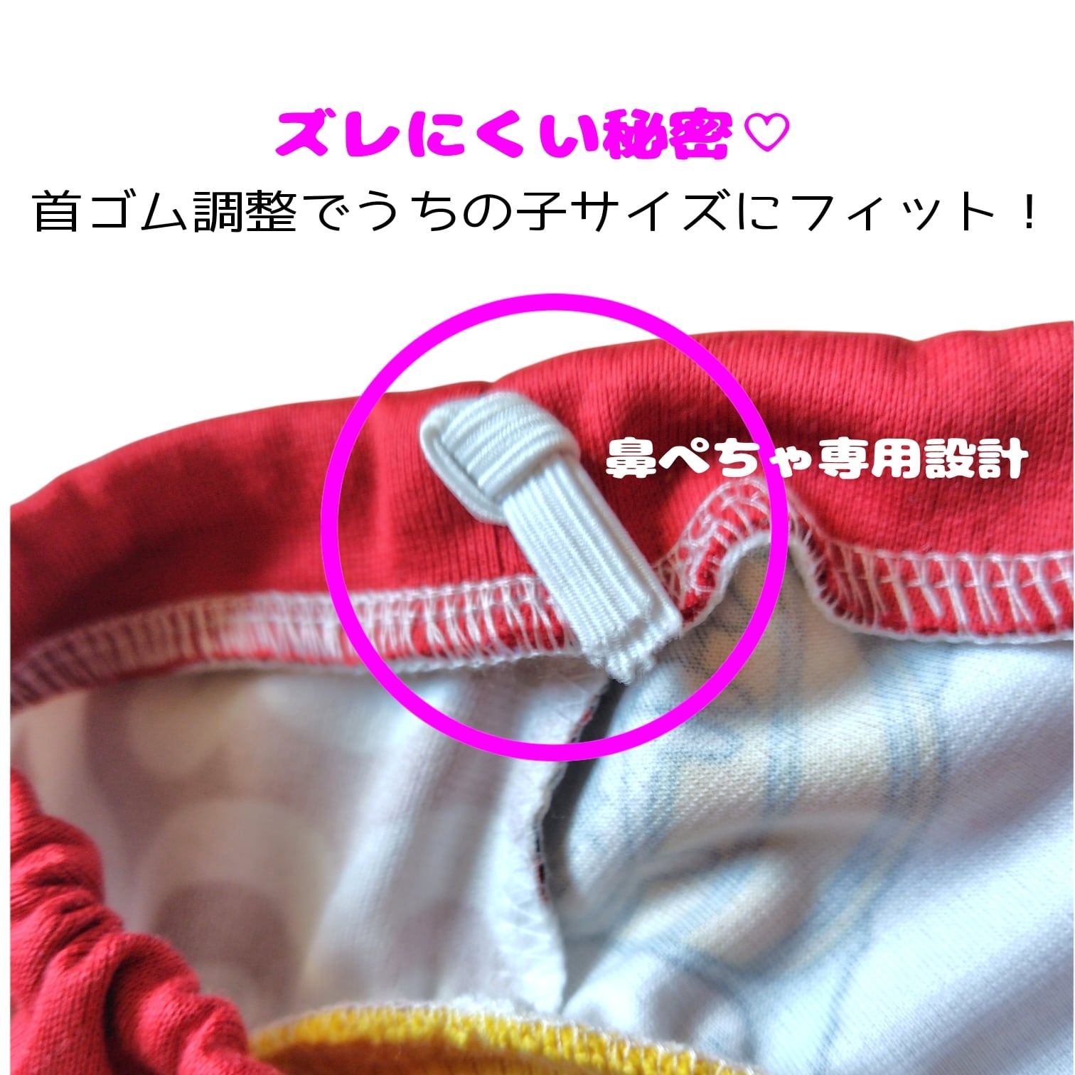 ☆首ゴムを調整してうちの子サイズにしっかりフィット(見本:写真5枚目)