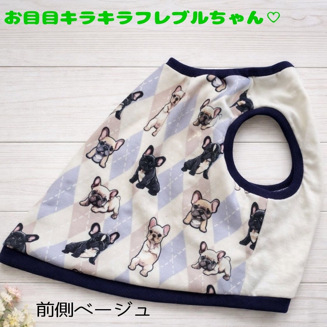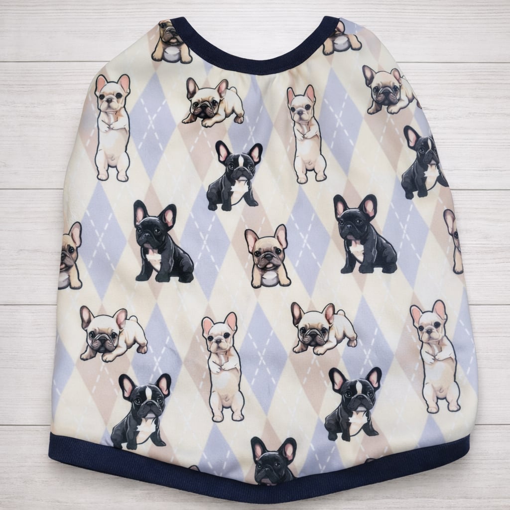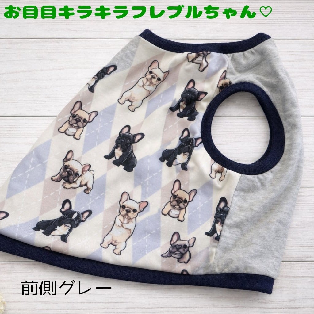 ずり落ちない♡アーガイル×フレブル柄タンク フレンチブルドッグパグフレブル服フレンチブルドッグ服犬服フレブル服フレンチ服可愛いフレブル服ブルドッグ柄フレンチブルドッグ柄フレンチ 服犬服BUHIブヒ服