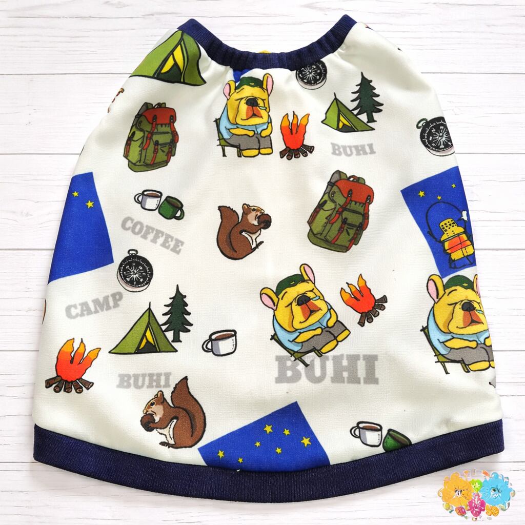 ずり落ちない♡キャンプ大好きフレブル柄タンク フレンチブルドッグパグフレブル服フレンチブルドッグ服犬服フレブル服フレンチ服可愛いフレブル服ブルドッグ柄フレンチブルドッグ柄フレンチ服犬服BUHIブヒ服